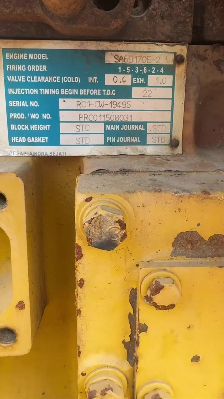 Б/у двигатель для бульдозера Komatsu D375-3. Двигатель в сборе, в хорошем состоянии, подходит для замены штатного силового агрегата, ремонта и восстановления техники. На шильдике указан двигатель Komatsu SA6D170E-2, серийный номер RC1-CW-19495. Хороший вариант для Komatsu D375-3, когда требуется замена двигателя в сборе без покупки нового узла.